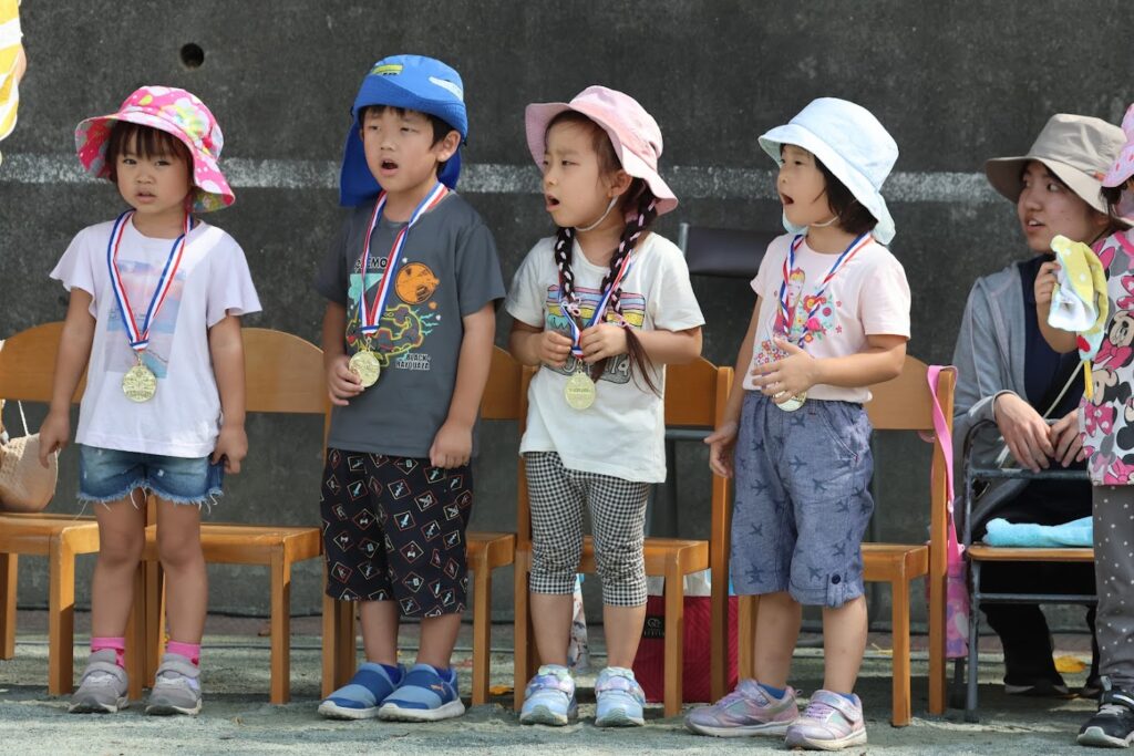 看板作りから、開会閉会の挨拶やアナウンス、プログラム中の係も担ってくれた年長さん!お休みの人がいたのは残念でしたが、幼稚園最後の運動会を全力で楽しみました!