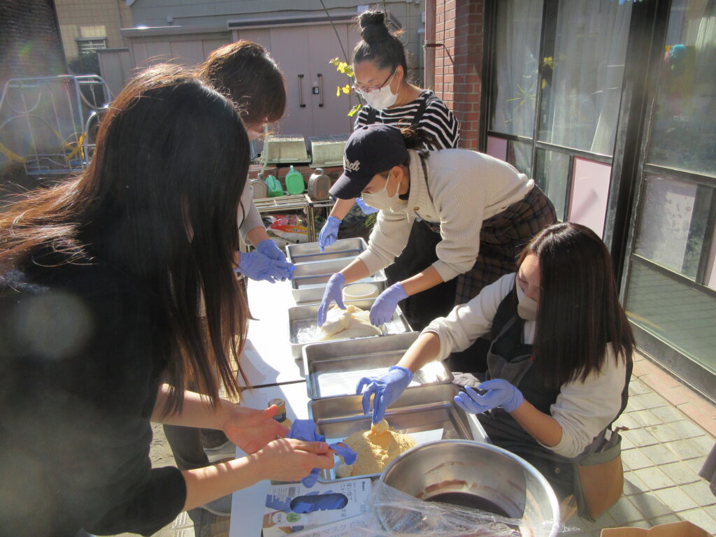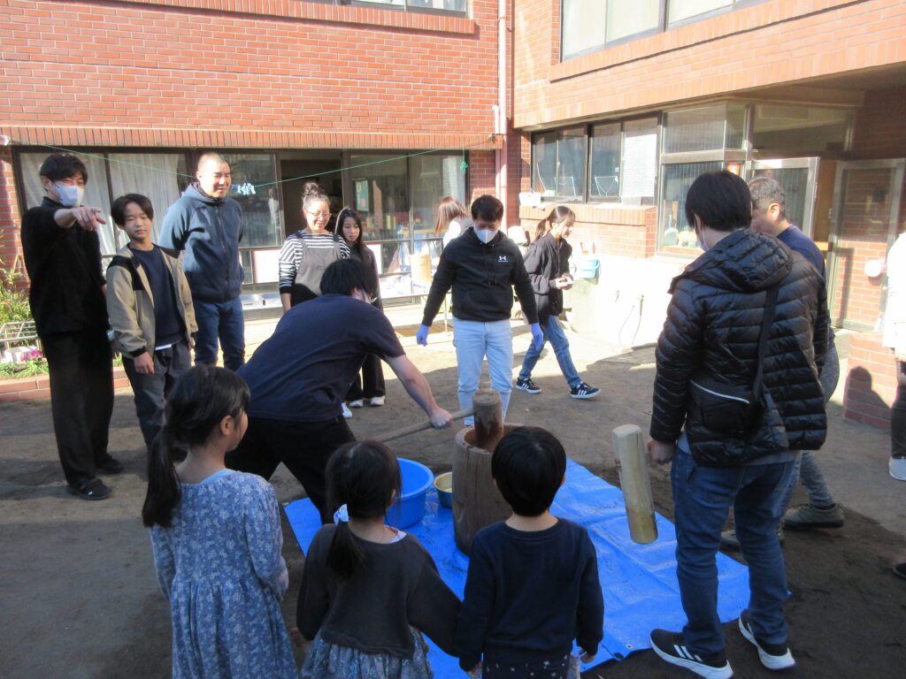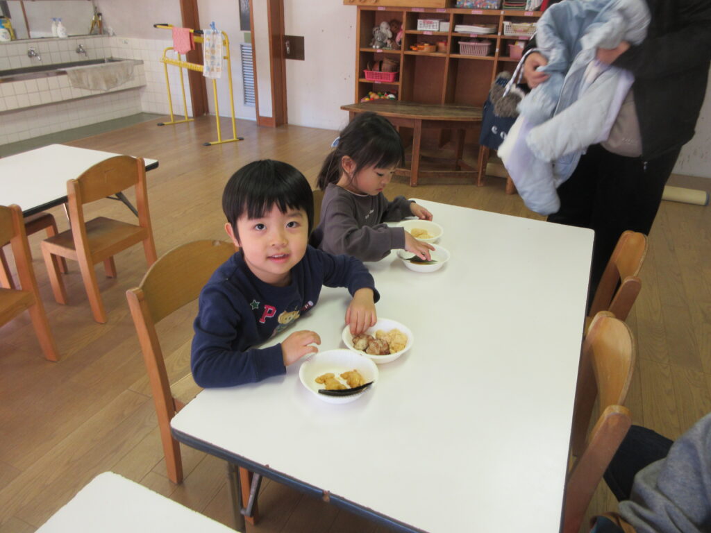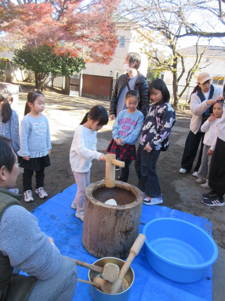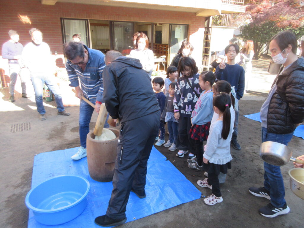 卒園生のお父さん・お母さん達が全て企画運営してくれ、つきたてのお餅や、おしるこ、豚汁等々、おいしいものをおなかいっぱいいただきました!