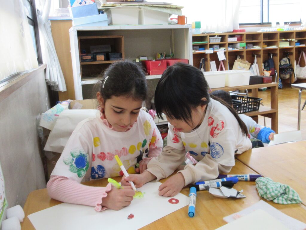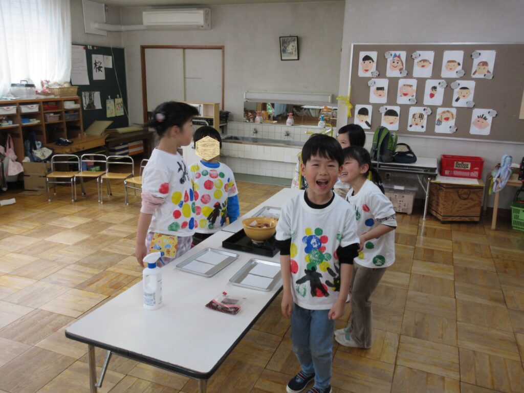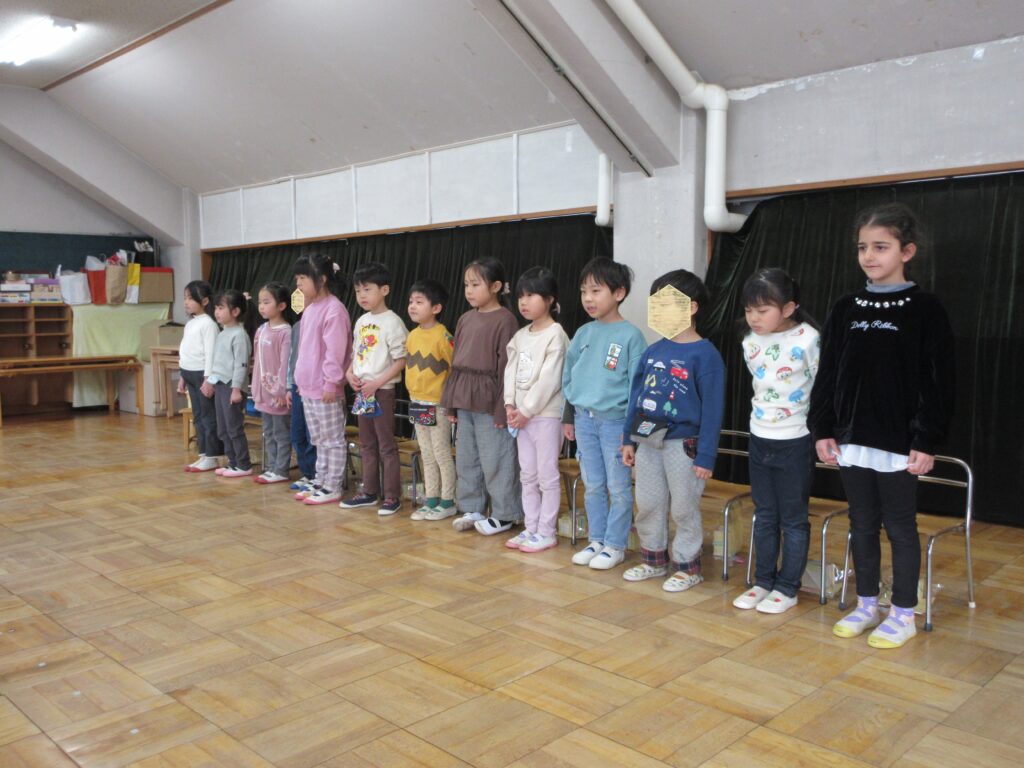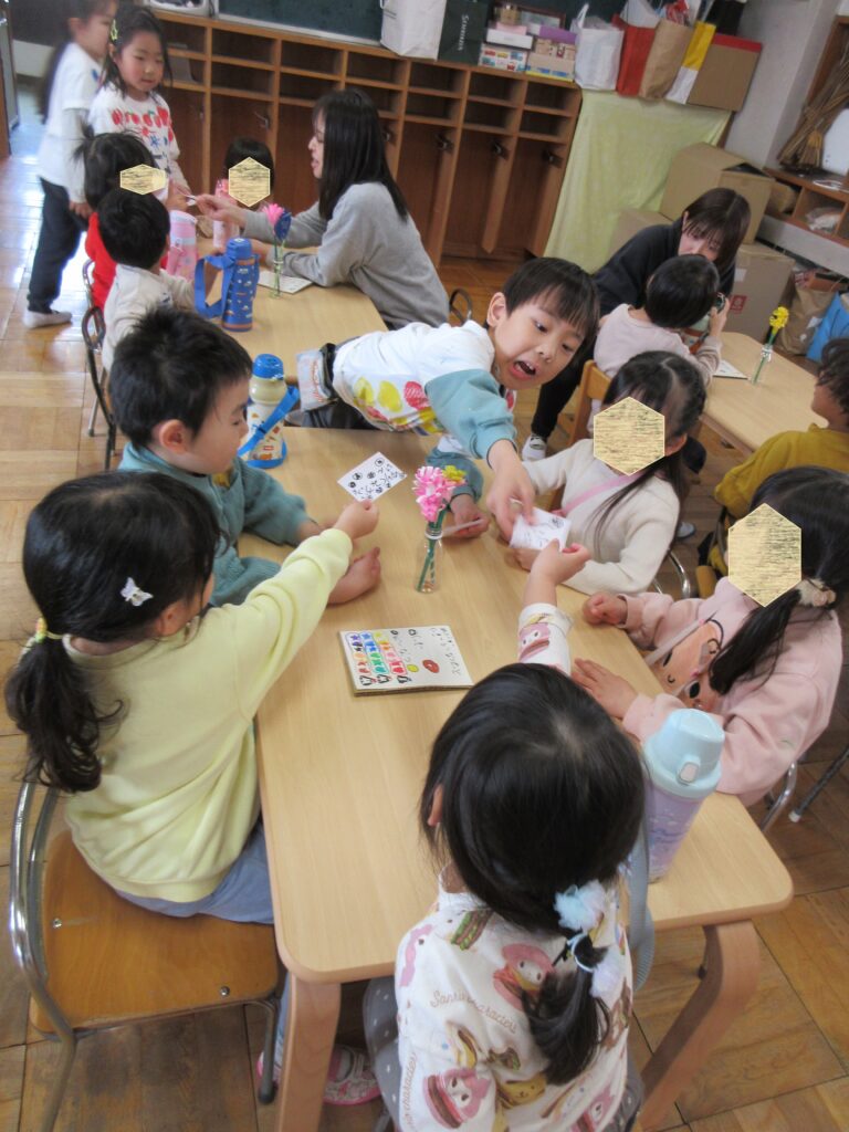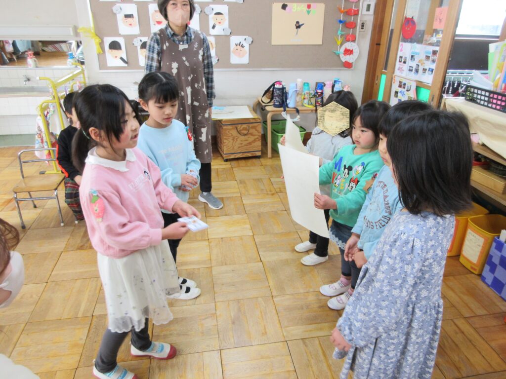 小さい組の人たちで、おわかれ会を計画し、ご招待に行ったら、年長さんからもサプライズで「ゆりぐみカフェ」に招待されました。