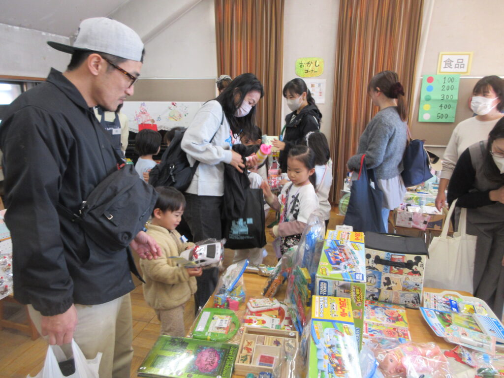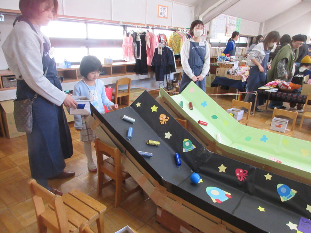当日は、1階は子ども達と先生達のお店が並び、2階では保護者のゲームコーナーとバザー!