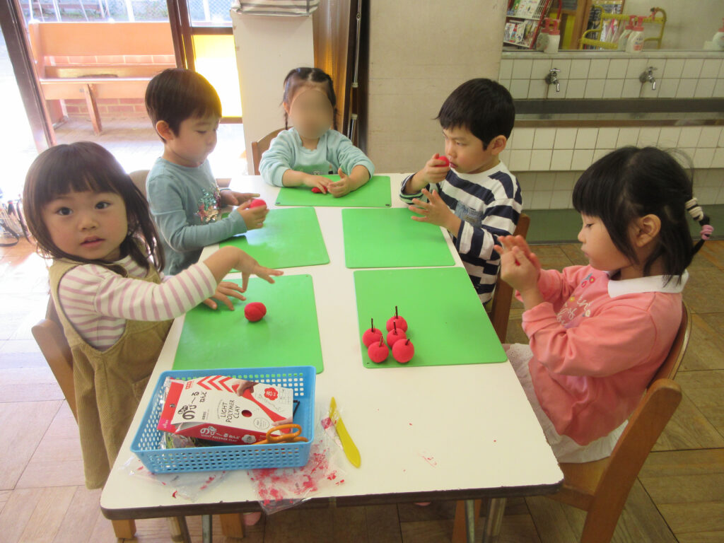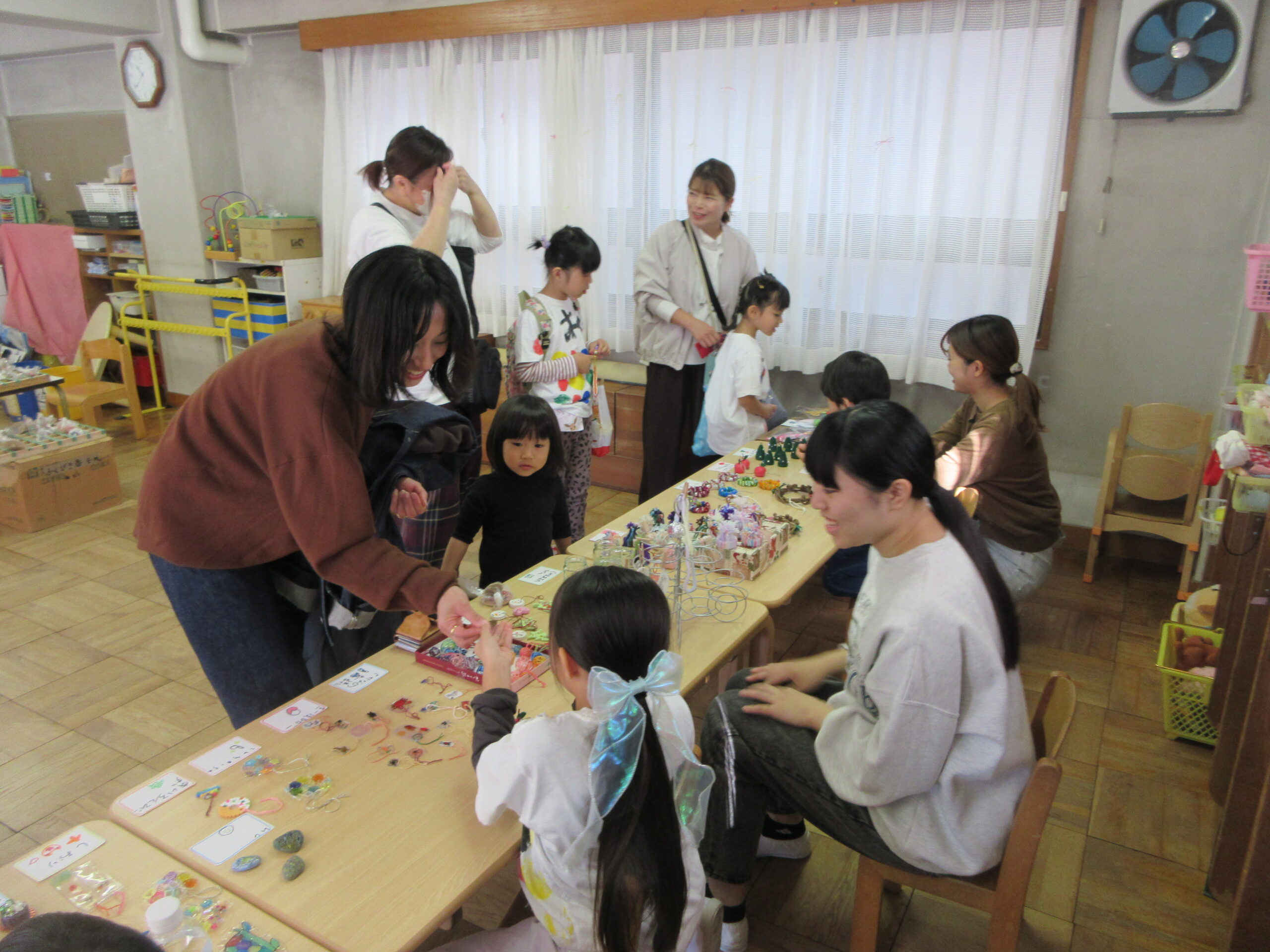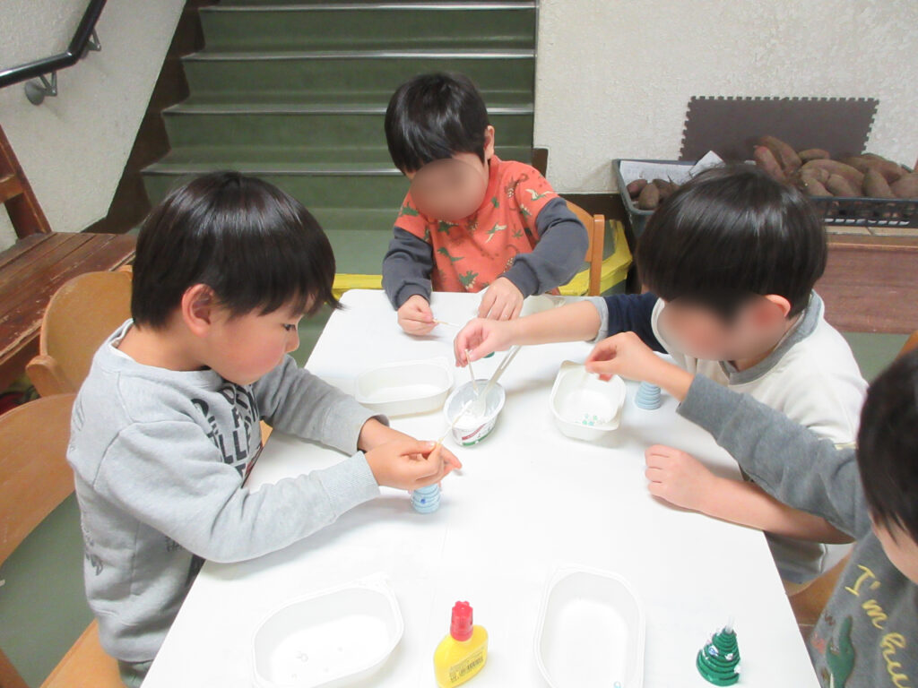 小さい組の人たちもクリスマスの飾りなどを作り、年長さんのお店に並べてもらいます。