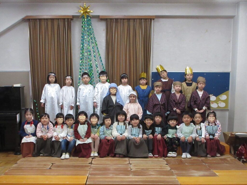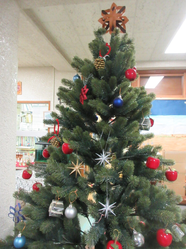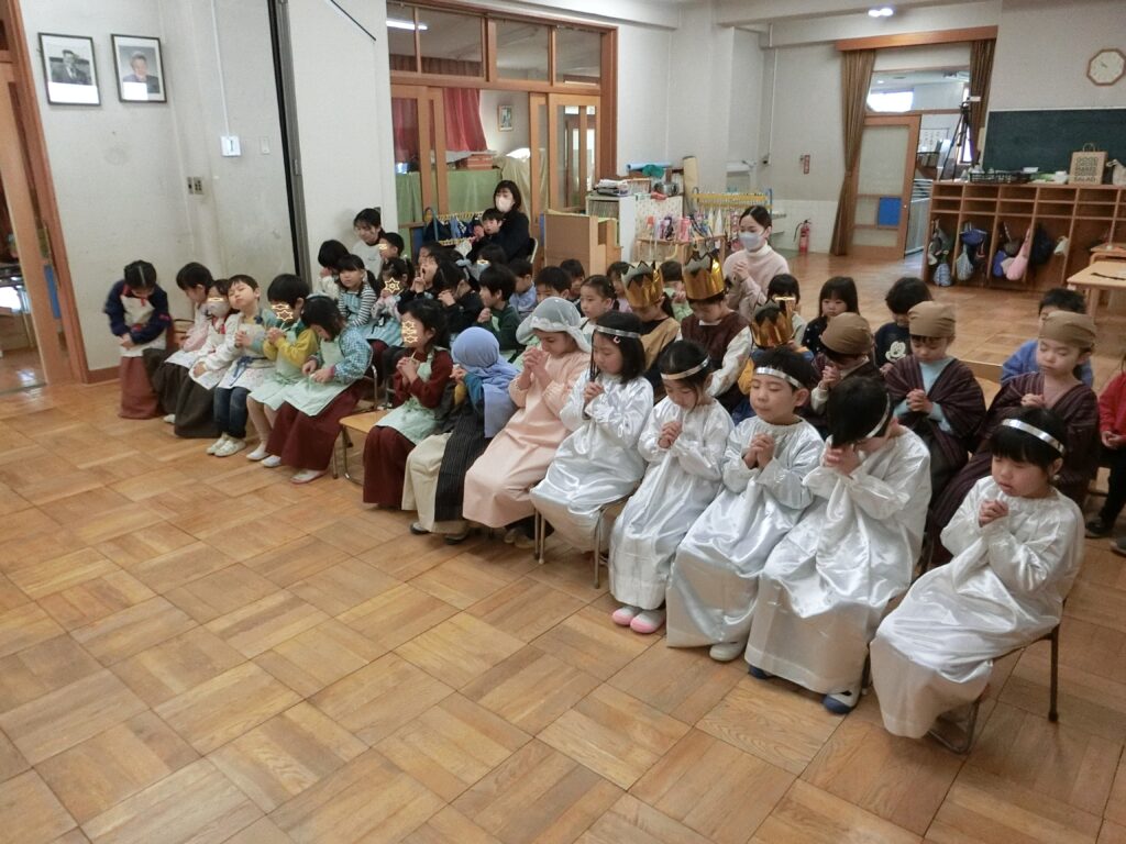 年長組がツリーの飾り付けをし、それぞれのクラスで献金箱を作り、部屋を飾り、ページェント(聖誕劇)を演じ、少しずつ準備を進めています。